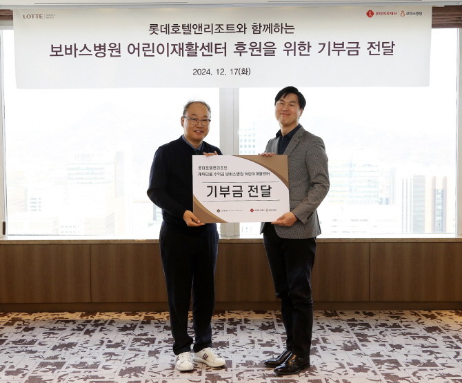 롯데호텔앤리조트 관계자는 "꾸준한 재활치료가 필요한 어린 아이들이 대기자가 많아 이곳 저곳 병원을 옮겨 다니며 치료를 받는 안타까운 상황이 빈번히 일어나고 있다"며 "보바스재활센터와의 좋은 인연을 시작으로 보다 나은 의료서비스 환경 조성에 보탬이 될 수 있도록 지원을 이어가겠다"고 전했다.