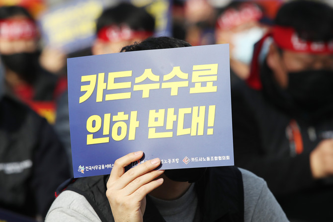 지난 적격비용 재산정 주기였던 2021년에는 양대 금융노조와 함께 '카드사 노동자 총파업 결의대회'를 개최하기도 했다.