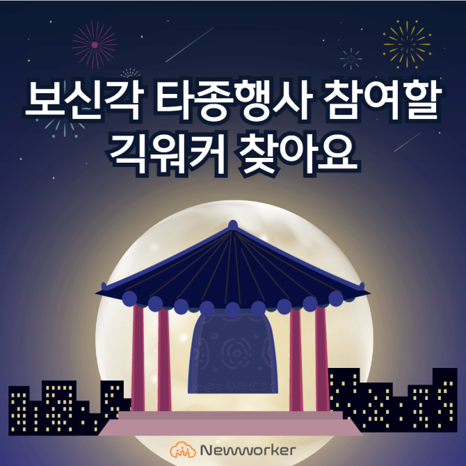 뉴워커는 올해 새해맞이 타종 행사에 참여할 긱워커를 모집하고 있다. 이번 긱은 12월31일부터 1월1일까지 서울 종로 보신각 인근에서 진행된다.