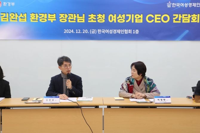 이날 간담회는 김완섭 환경부 장관을 비롯한 이정한 회장, 박창숙 수석부회장 등 환경 분야 여성 CEO 30명이 참석했다.
