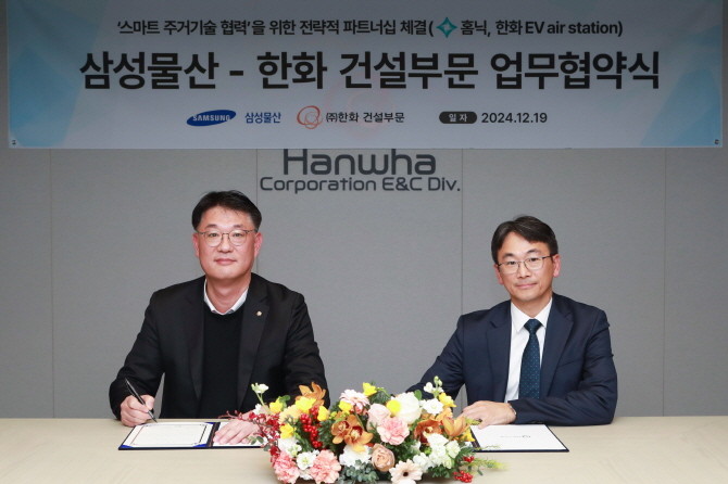 이번 업무협약을 통해 홈플랫폼 '홈닉'을 한화포레나에 도입하고, 삼성물산은 한화의 전기차 충전 시스템 'EV 에어 스테이션'을 래미안에 적용할 예정이다.