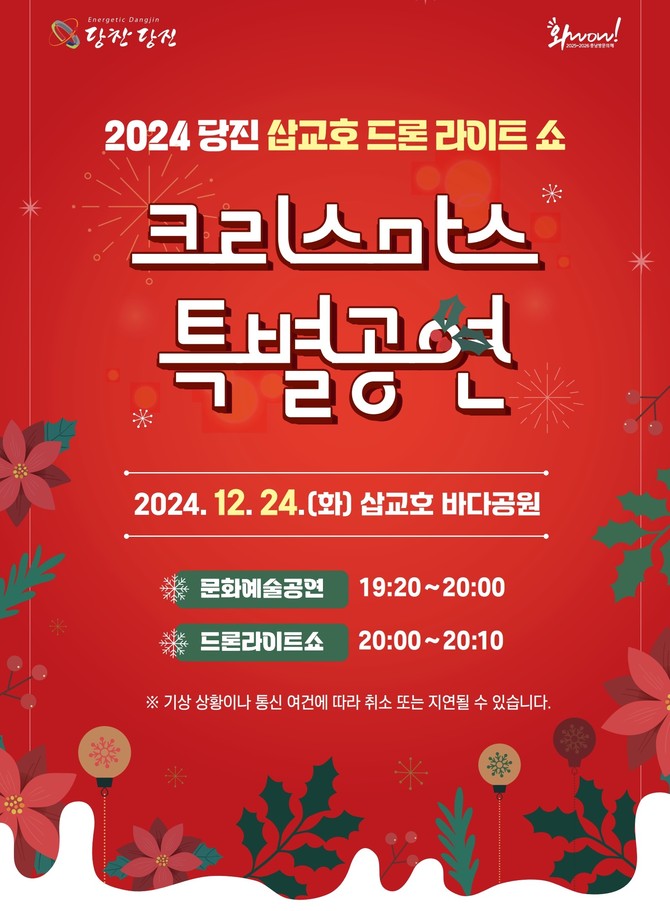 한편, 이번 크리스마스 드론 라이트 쇼는 당진시가 준비한 특별한 연말 선물로, 가족, 친구, 연인과 함께 소중한 추억을 만들 수 있는 기회가 될 것으로 기대된다.