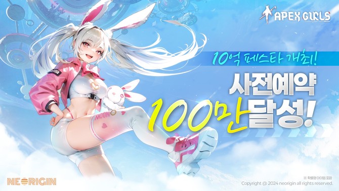 '에이펙스 걸스'는 기계군단 '루인'에 의해 멸망한 세계를 기계소녀 '스텔라'들이 지켜내는 이야기를 담은 모바일 게임이다. 네오리진은 사전 예약자 수가 100만명을 돌파함에 따라 게임 오픈 시기에 맞춰 공약으로 건 '10억 세일 페스타' 이벤트를 진행할 계획이다.