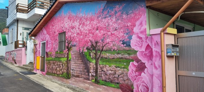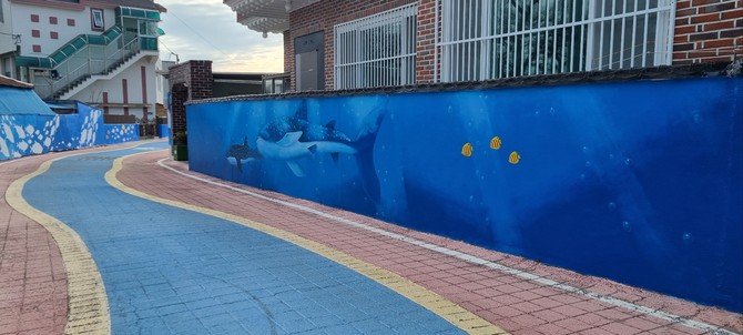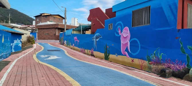 바다와 연결된 바다길은 푸른 바다와 사천시를 대표하는 상괭이를 표현해 바다의 평화로운 분위기를 표현했고, 꽃길은 청룡사 겹벚꽃, 와룡산 철쭉 등의 벽화로 지역의 꽃과 자연의 아름다움을 표현했다.