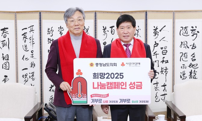 성우종 회장은 "충청남도의회의 따뜻한 마음이 지역사회에 큰 힘이 될 것"이라며 "소중한 성금은 꼭 필요한 곳에 잘 전달하겠다"는 감사의 뜻을 밝혔다.