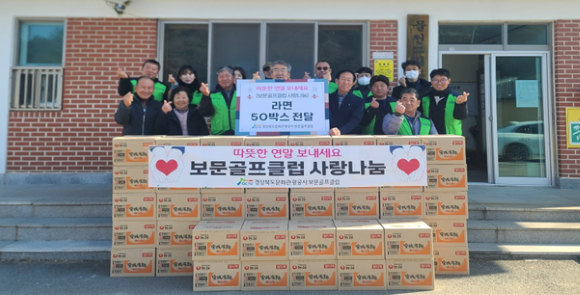보문골프클럽 근무자들은 지역주민 천북면 물천2리 마을회관과 경주시 서면에 위치한 중증장애인 시설 '다사랑'을 방문해 라면 50박스, 생필품 150만원 상당의 물품을 전달하고 시설물 보수 및 환경정비를 실시했다.