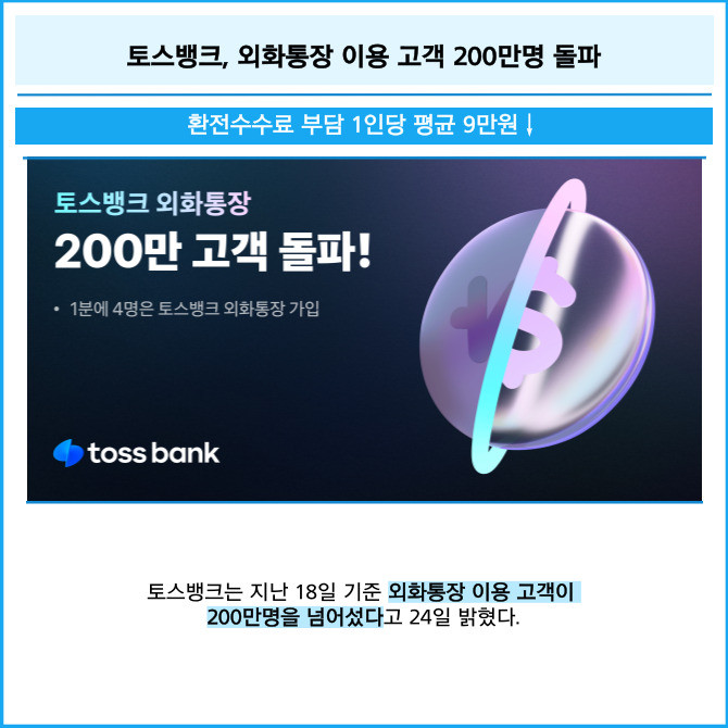 [카드] 토스뱅크, 외화통장 이용 고객 200만명 돌파
