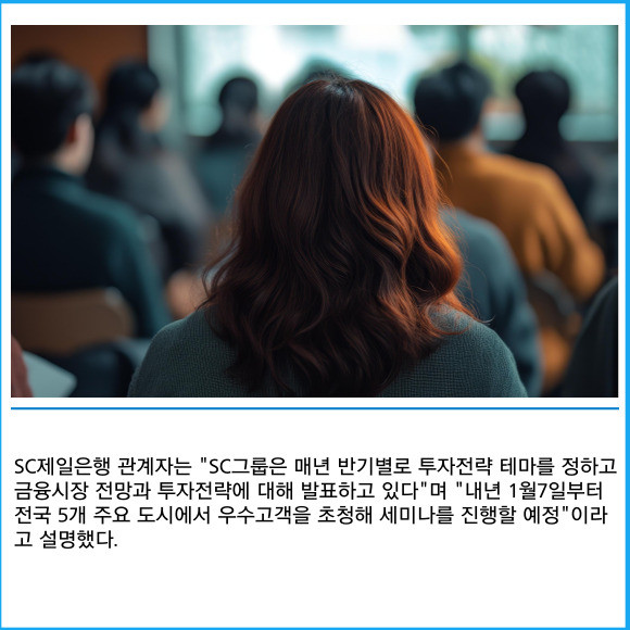 [프라임경제] SC제일은행이 자산관리(WM) 고객을 위한 '2025년 글로벌 금융시장 전망과 투자전략 보고서'를 발표했다고 24일 밝혔다.
