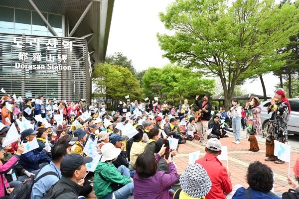 통일열차 첫 운행에 나선 지난 2022년부터 2024년까지 효천역에서 시작한 남녘 발 통일 염원을 총망라한 자리이다.