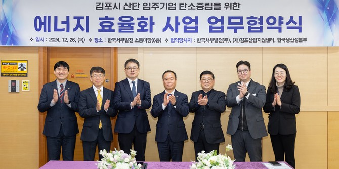 서부발전은 충남 태안 본사에서 한국생산성본부, 김포산업지원센터와 업무협약을 체결, 산업단지 입주 기업들의 저소비·고효율 구조 전환과 탄소중립 목표 달성을 위해 협력할 예정이다.