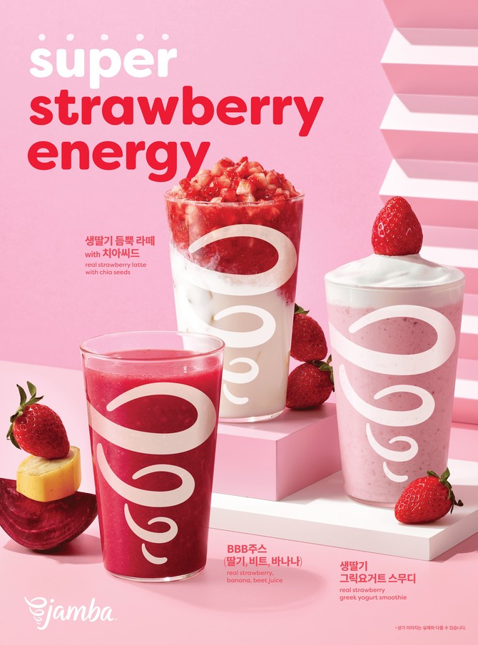 이번 신제품은 'Super Strawberry Energy!'를 콘셉트로 그릭요거트·비트·치아시드 등의 다양한 원료를 사용해 딸기의 풍부한 맛을 살렸다.