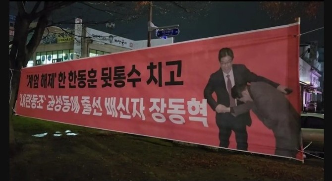 [프라임경제] 국민의힘 장동혁 의원(보령·서천)의 지역사무소에서 현수막을 둘러싼 공방이 벌어져 정치적 논란이 일고 있다. 12·3 비상계엄과 탄핵 정국의 후폭풍 속에서 장 의원과 지지자들 사이의 갈등이 더욱 심화되고 있으며, 당내에서 한동훈 전 대표 지지자들과 장 의원 지지자들 간의 대립도 감지되고 있다.