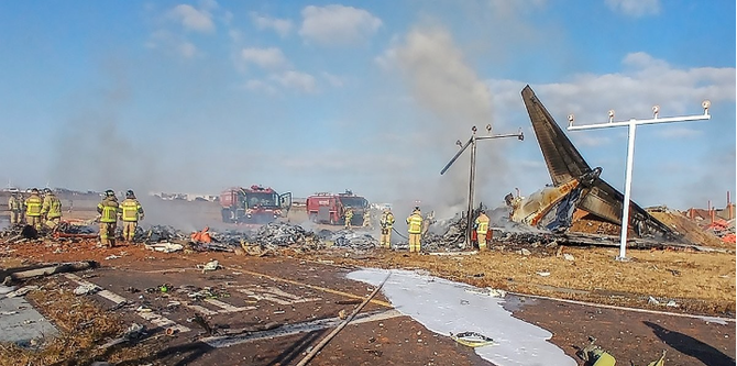 이날 오전 전라남도 무안국제공항에서 제주항공 여객기가 착륙 중 담벼락을 들이받고 불이 났다. 소방청 등에 따르면 해당 여객기(B737-800)는 태국 방콕에서 출발해 무안으로 입국하던 제주항공 7C 2216편으로 승객 175명(한국인 173명, 태국인 2명)과 승무원 6명 총 181명이 탑승하고 있던 것으로 파악됐다.