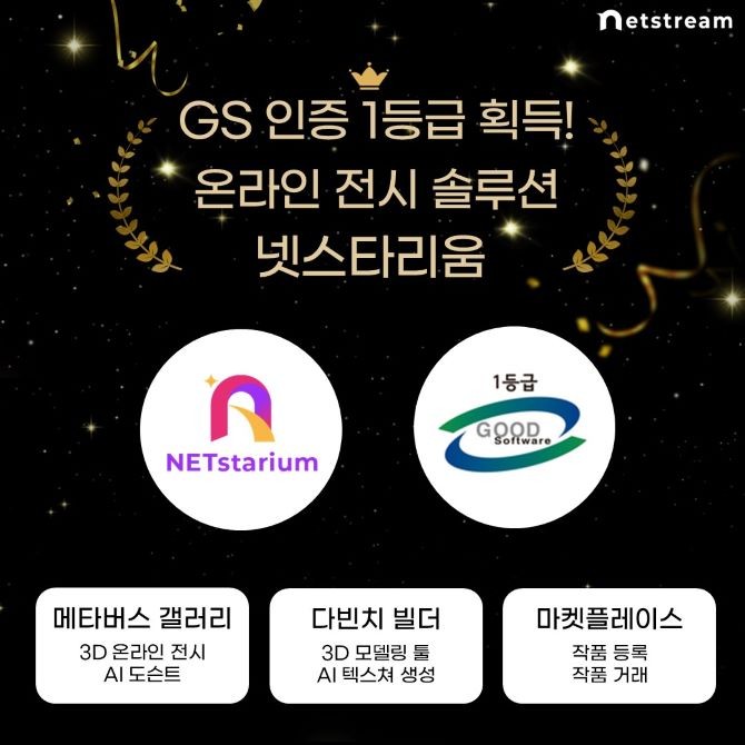 [프라임경제] SaaS형 온라인 갤러리 솔루션 ‘NETstarium’(이하 넷스타리움)을 개발, 운영중인 아트테크 기업 넷스트림(대표 상현태)이 GS인증 1등급을 획득했다.