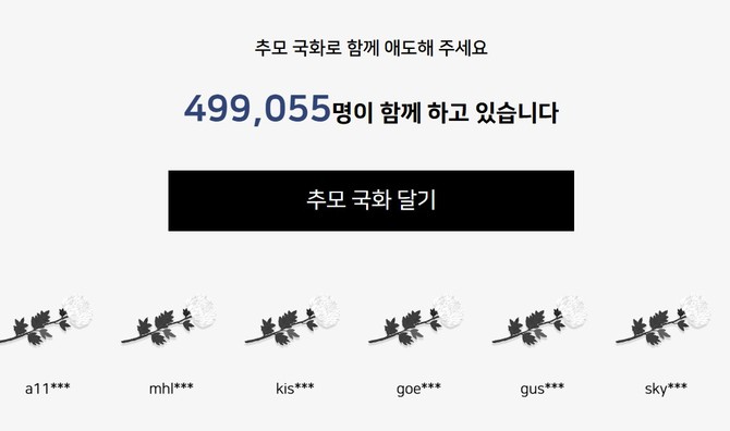 해당 탭에 접속시, 추모 국화를 달 수 있으며 참여 숫자는 네이버 ID 기준으로 1회만 집계된다. 중복 참여가 가능하다. 화면 하단에는 추모에 동참한 이들의 아이디 일부가 공개됐다.