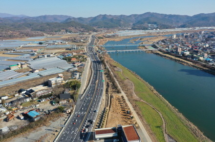 이번 확·포장공사는 교통정체 해소와 지역 간 연결을 위해 총사업비 1256억 원이 투입된 대규모 프로젝트다. 전체 연장 6.85㎞, 4차선으로 한층 넓어지고 안전한 도로로 탈바꿈했다.