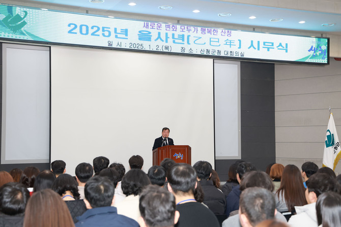 이날 시무식에는 이승화 산청군수를 비롯해 공무원 등이 참석해 2025년 산청군 발전에 대한 결의를 다졌다.