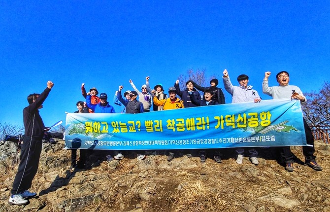 을사년 새해를 맞아 1일 가덕도신공항 개항을 위해 앞장섰던 시민단체들이 모여 가덕도 연대봉 정상에서 신공항의 안전 개항을 빌었다.