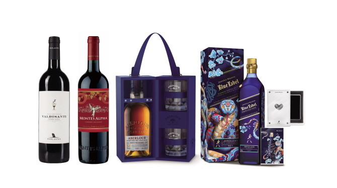 먼저, 푸른 뱀띠의 새해를 기념하는 특별한 세트들을 준비했다. 이마트 앱 '와인그랩'에서 한정 판매하는 '톨라이니 발디산티 IGT 2020 750ml' 외에도, 한정판 패키지로 나온 '조니워커 블루뱀띠 에디션 750ml' '몬테스 알파 카버네소비뇽 스페셜 뱀띠 에디션'이 있다.