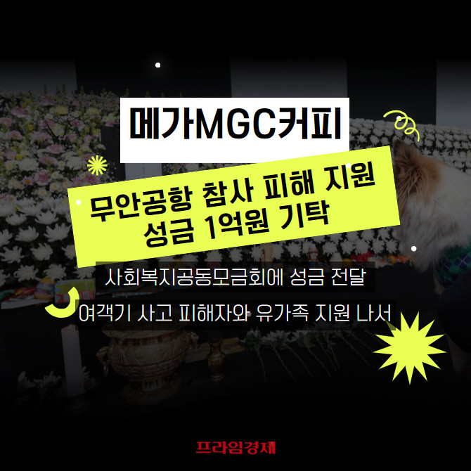 [프라임경제] 메가MGC커피가 무안국제공항 제주항공 여객기 사고 피해자 지원에 나섰다.