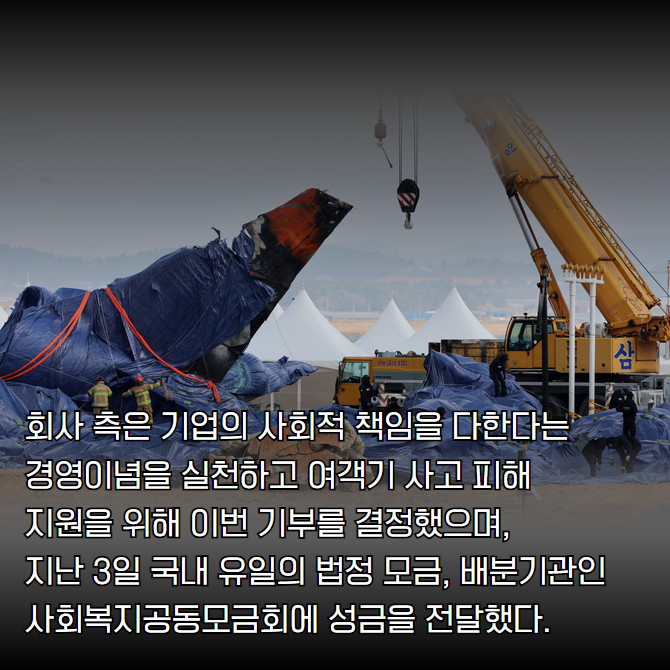 사회복지공동모금회에 성금 전달, 여객기 사고 피해자와 유가족 지원 나서