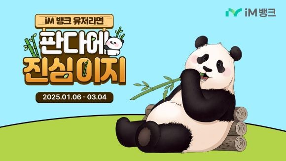 [프라임경제] iM뱅크(아이엠뱅크, 은행장 황병우)는 단기소액적금 '진심이지 적금'의 2025년 첫번째 상품으로 '판다에 진심이지' 적금을 출시하고, 오는 3월4일까지 3만좌를 한정 판매한다.