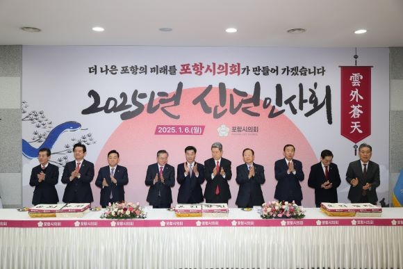 의원들과 내빈들은 새해 덕담을 나누고 의정철학을 담은 운외창천(雲外蒼天 : 어두운 구름 밖으로 나오면 맑고 푸른하늘이 나타난다)이 새겨진 시루떡을 자르며 2025년 포항시의회 의정 운영 방향과 비전을 공유했다.