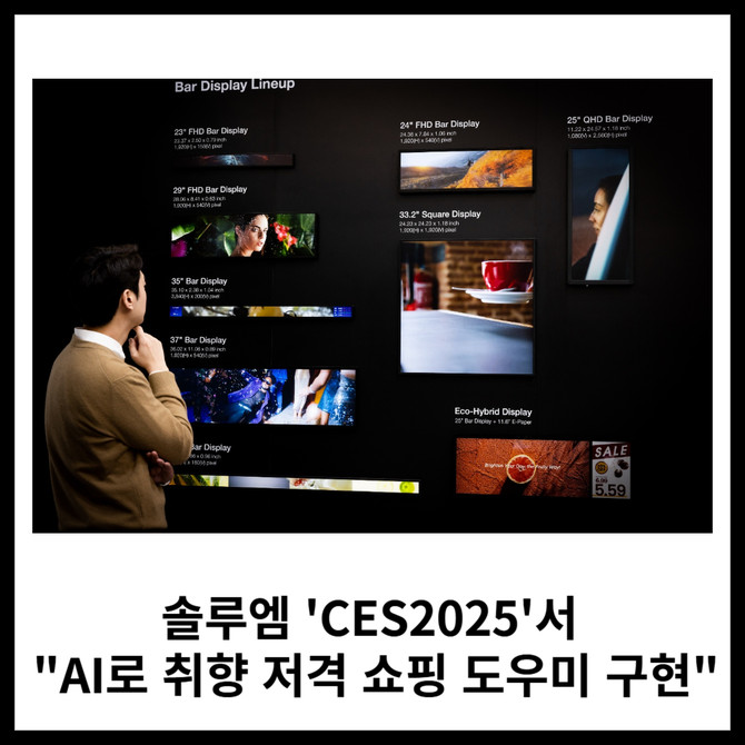 [프라임경제] 세계 최대 IT 가전 박람회 CES2025에서 솔루엠은 디지털 사이니지와 AI 기술을 활용한 맞춤형 광고 솔루션을 선보였다. 이 기술은 방문객의 성별과 연령대를 실시간으로 분석해 효과적인 마케팅을 지원하며, 실제 적용된 매장에서 구매 전환율을 7% 이상 향상시켰다고 밝혔다.