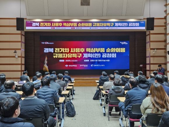 공청회에서는 '경북 전기차 사용후 핵심부품 순환이용 규제자유특구' 사업계획에 대한 내용과 함께 지정 필요성, 실증연구 내용 및 향후 추진일정 등을 설명했다.