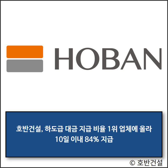 호반건설은 지난 5일 공정거래위원회가 공개한 '2024 상반기 하도급 대금 결제조건 공시 점검 결과'에서 하도급 대금 결제조건을 공시한 88개 기업집단 소속 1396개 사업자 가운데 '10일 이내 지급 비율'에서 가장 높은 84.62%를 기록했다.