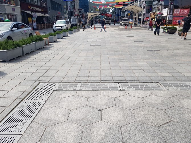이 구간은 분수 행사때 물끼가 그대로 보도위에 남아 상당히 미끄러운 상태가 유지돼 통행시 작은 걸림에도 큰 상해가 우려돼 왔다.