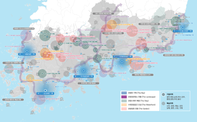 경남도의 남동권은 부산·울산과 함께 해양과 문화에 기반한 사계절 해양문화휴양 관광지대를 조성하고 남중권은 전남과 영호남의 한국적인 경관 및 문화를 보유해 휴식을 제공하는 한국형 웰니스 관광지대 조성을 목표로 하고 있다.