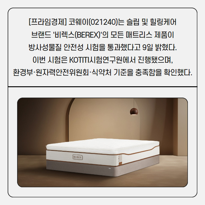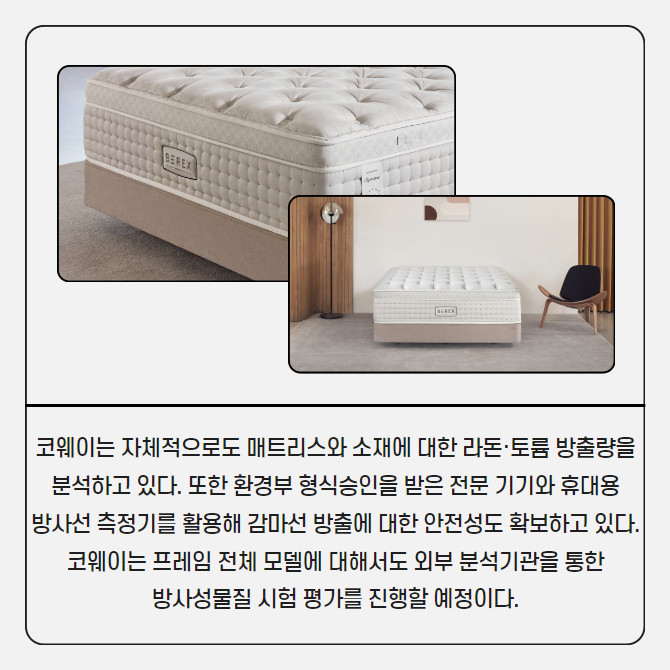 [카드] 코웨이, '비렉스 매트리스' 전 제품 방사성물질 안전성 통과