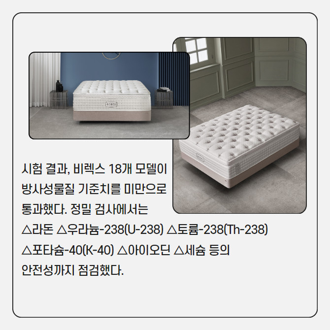 매트리스 18개 모델, 국가공인시험기관서 방사성물질 7종 안전성 확보