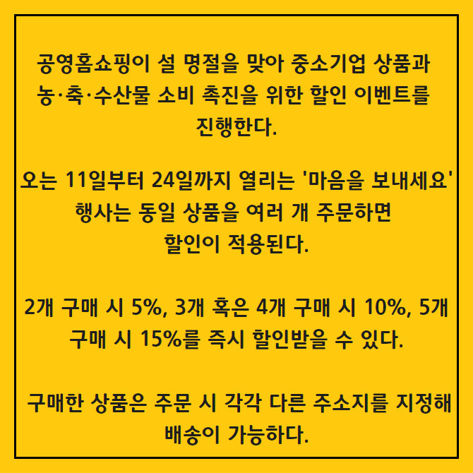 [카드] 공영홈쇼핑, 설맞이 '마음을 보내세요' 이벤트