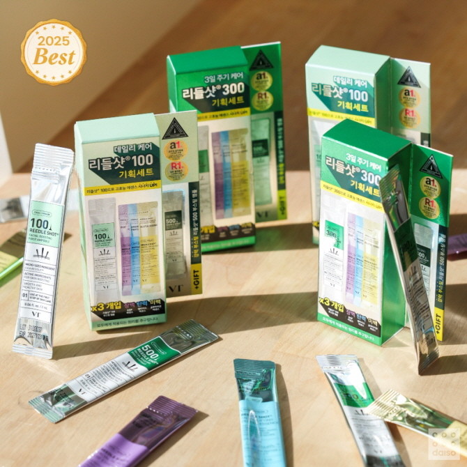 먼저, 올해 큰 화제를 모았던 뷰티용품은 세트 구성으로 새롭게 선보인다. 'VT 리들샷 100 기획 세트(6+1)'는 피부 흡수를 도와주는 '리들샷 100 페이셜 부스팅 퍼스트 앰플' 3개와 피부 고민에 따라 골라 사용하기 좋은 VT의 고효능 에센스 3종, '리들샷 500 페이셜 부스팅 퍼스트 앰플'을 합친 'VT 리들샷 기획세트'로 준비했다.