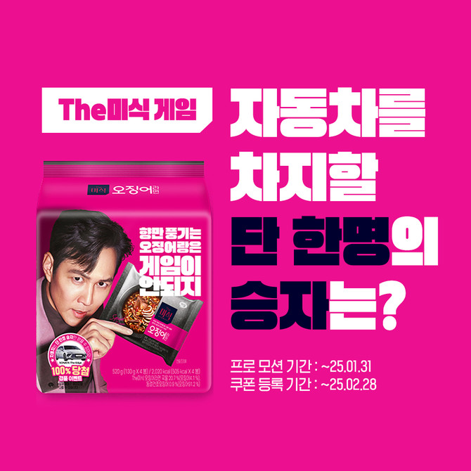 하림(136480)이 오는 31일까지 '더미식(The미식) 오징어라면' 멀티팩 구매 고객을 대상으로 100% 당첨되는 경품 이벤트 'The미식 게임(부제: 자동차를 차지할 단 한 명의 승자는?)'을 진행한다.