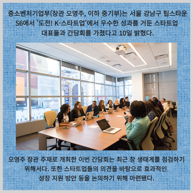 [프라임경제] 중소벤처기업부(장관 오영주, 이하 중기부)는 서울 강남구 팁스타운 S6에서 '도전! K-스타트업'에서 우수한 성과를 거둔 스타트업 대표들과 간담회를 가졌다고 10일 밝혔다.