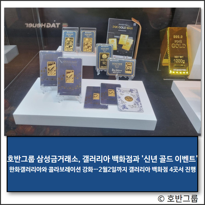 호반그룹에 따르면 이번 행사는 삼성금거래소와 한화갤러리아가 그룹 차원의 콜라보레이션을 강화해 기획된 것으로, 10일부터 2월2일까지 갤러리아 백화점 4곳에서 진행된다.
