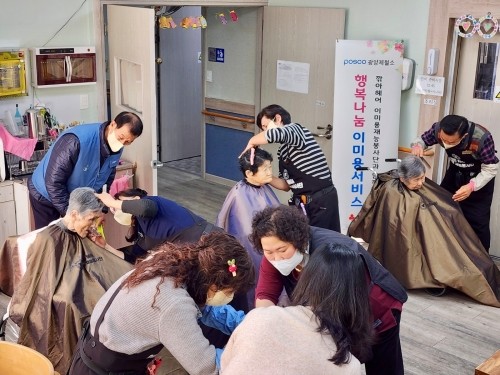 지난 9일 광양제철소(소장 고재윤) 깎아헤어 이미용 재능봉사단이 광양읍에 위치한 광양시사랑요양원에서 지역 어르신들을 대상으로 이미용 재능봉사활동을 펼치며 을사년 새해 따뜻한 이웃사랑을 전했다.