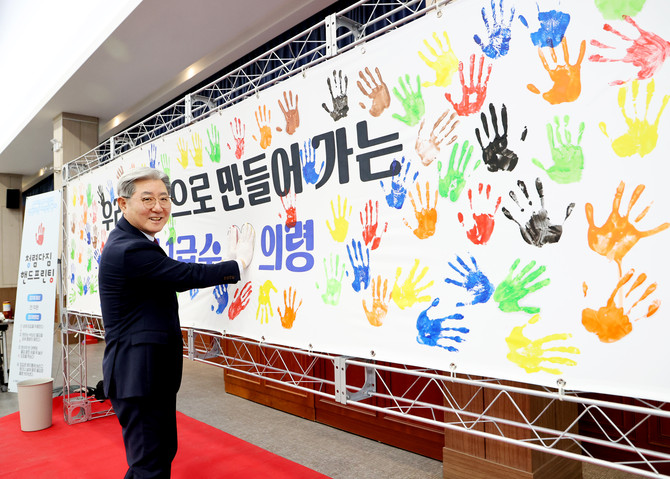 이날 열린 행사는 '우리의 손으로 만들어 가는 청렴 1급수 의령'이라는 주제로 현수막에 손바닥 도장을 찍으며 청렴 실천 의지를 다짐하는 방식으로 진행했다.