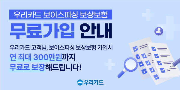 ◆우리카드 '보이스피싱 보상 보험 무료가입' 개시