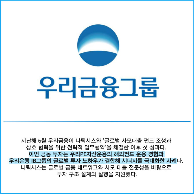 [프라임경제] 우리금융그룹(316140)은 전략적 파트너인 프랑스 투자은행 나틱시스(Natixis)와 함께 미국 데이터센터 두 곳에 1억5000만달러(한화 약 2100억원)를 공동 투자했다고 14일 밝혔다.