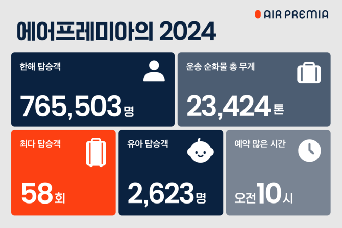 에어프레미아는 항공운송 실적 외에도 자사 탑승데이터를 분석해 2024년의 재미있는 기록들도 함께 공개했다.