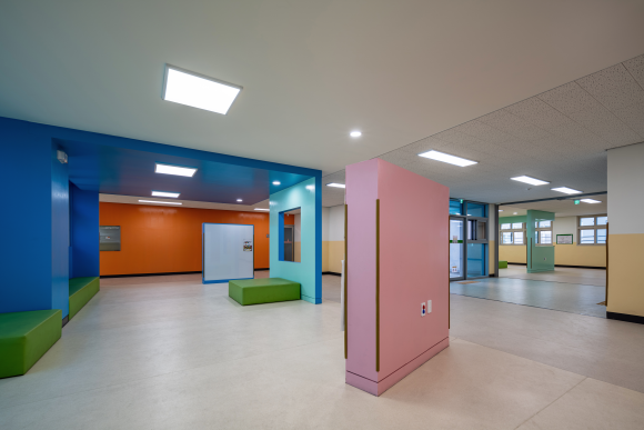 유·초·특수 연계 교육과정이 원활하게 운영될 수 있도록 전체 공간을 배치했고, 실내체육관, 옥상 놀이공간 등 다양한 다목적 공간이 마련되어 통합연계 교육공간으로 활용되고 있다.