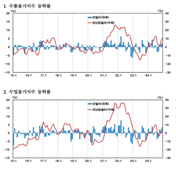 이문희 한은 경제통계국 물가통계팀장은 "1월 들어서도 평균 환율이 전월 대비 오른 상태고 국제유가도 오르는 모습"이라며 "해당 요인들이 1월에도 수출입물가 상승 요인으로 작용할 것으로 보인다"고 말했다.
