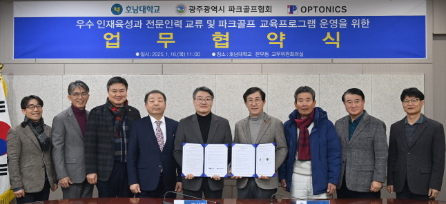 [프라임경제] 호남대학교(총장 박상철)는 16일 본부동 3층 교무위원회의실에서 광주광역시파크골프협회(회장 이용범)와 업무협약을 체결, 파크골프의 대중화와 스포츠산업 발전을 위해 상호 협력하기로 했다.