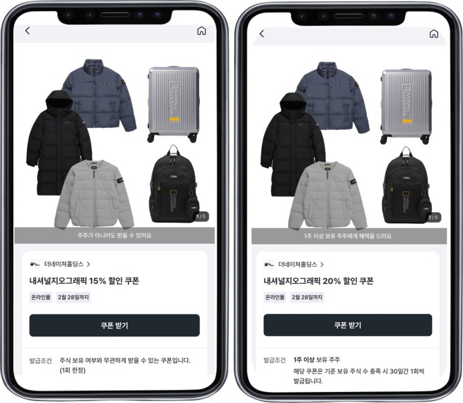 주주 우대는 주식 1주만 보유해도 해당 종목이 영위하고 있는 사업의 제품 및 서비스에 대한 할인 혜택 등을 만나볼 수 있는 프로모션이다. 예를 들어 더네이쳐홀딩스 주식을 1주라도 보유한 주주는 내셔널지오그래픽 어패럴 등 대표적 브랜드의 다양한 제품들을 할인된 가격에 만나 볼 수 있다.