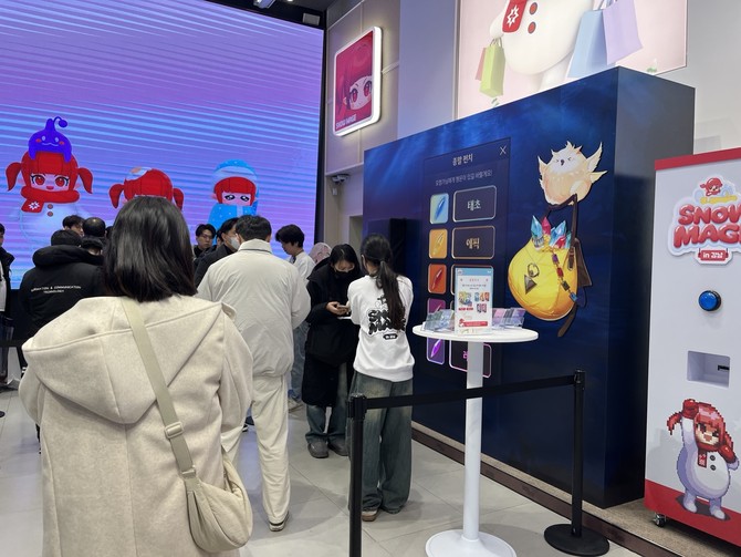 스노우 메이지 굿즈가 들어있는 크레인 게임도 마련됐다. 굿즈를 구매한 뒤, 게임을 즐기러 온 유저들의 환호와 탄식이 들렸다.