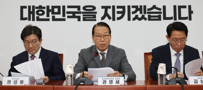 권영세 국민의힘 비상대책위원장은 20일 국회에서 열린 비대위 회의에서 "사법 절차 진행 과정의 문제점들, 국민들이 분노하는 이유를 너무나 잘 안다"면서도 "하지만 폭력적 방식을 쓴다면 스스로의 정당성을 약화하고 사회 혼란을 가중시킨다"고 말했다.